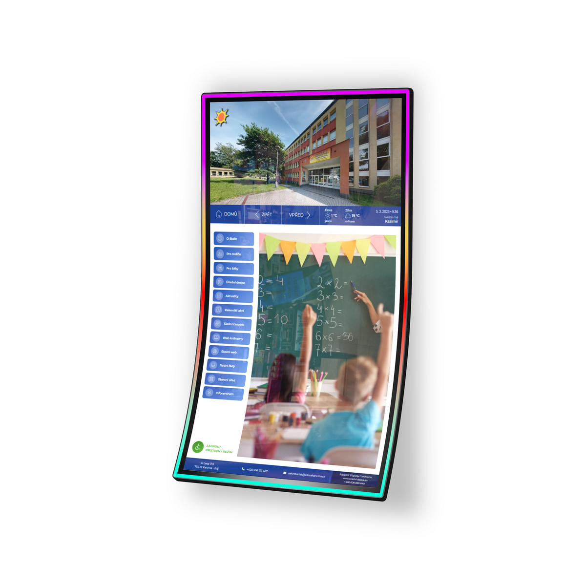 Snadná integrace s vašim webem nebo externími či interními systémy - Náš systém LEDWARE plně automaticky načítá informace z vašich webových stránek, ale i z informačních systému (Bakaláři, Škola online, Edupage atd.)