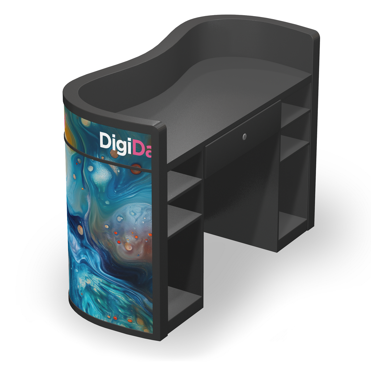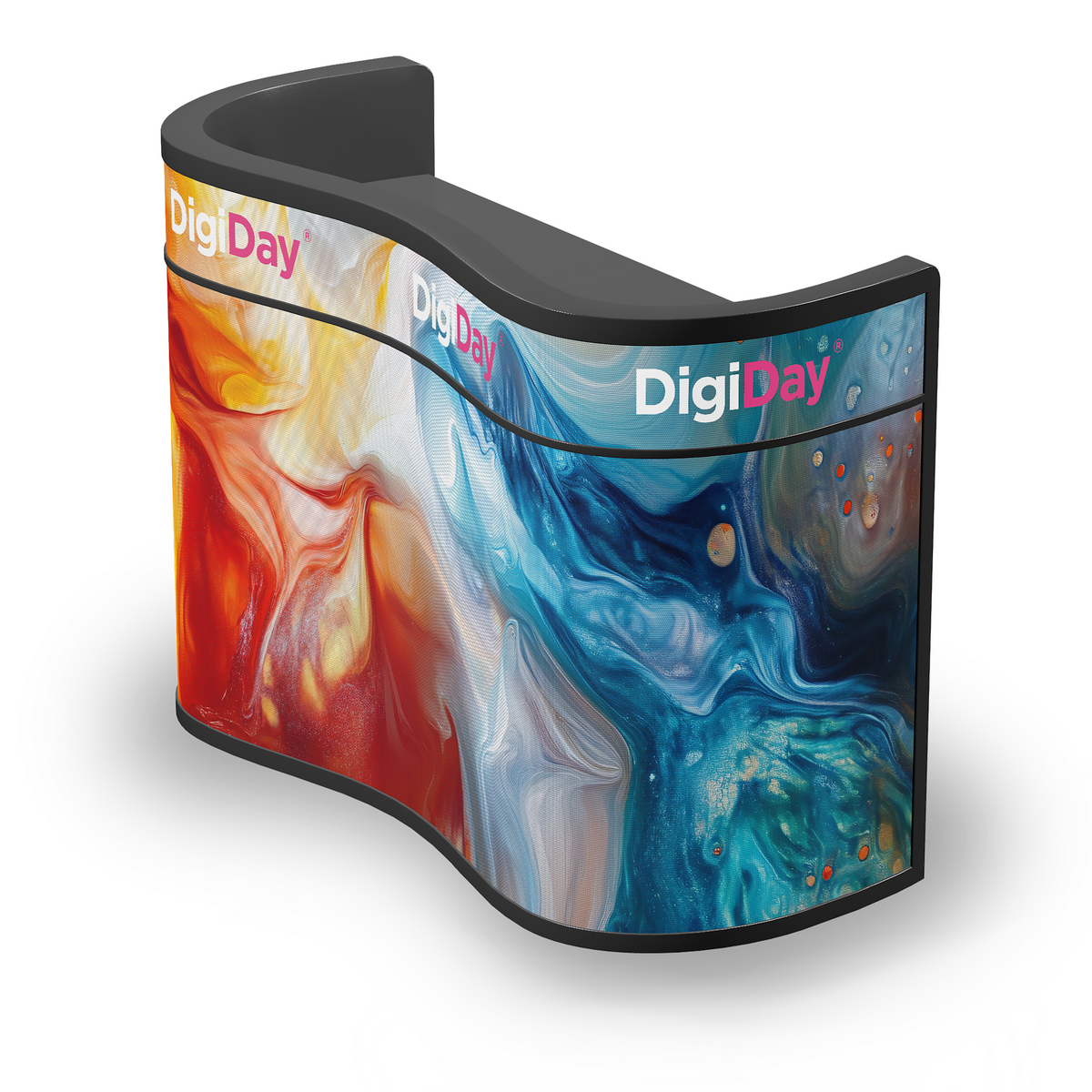 Recepční pult s celoplošným LED panelem představuje moderní a dynamický prvek, který kombinuje funkčnost s vizuálně působivým designem. Místo tradičního pevného materiálu je čelní strana vybavena LED panely, které mohou zobrazovat různé barvy, animace...