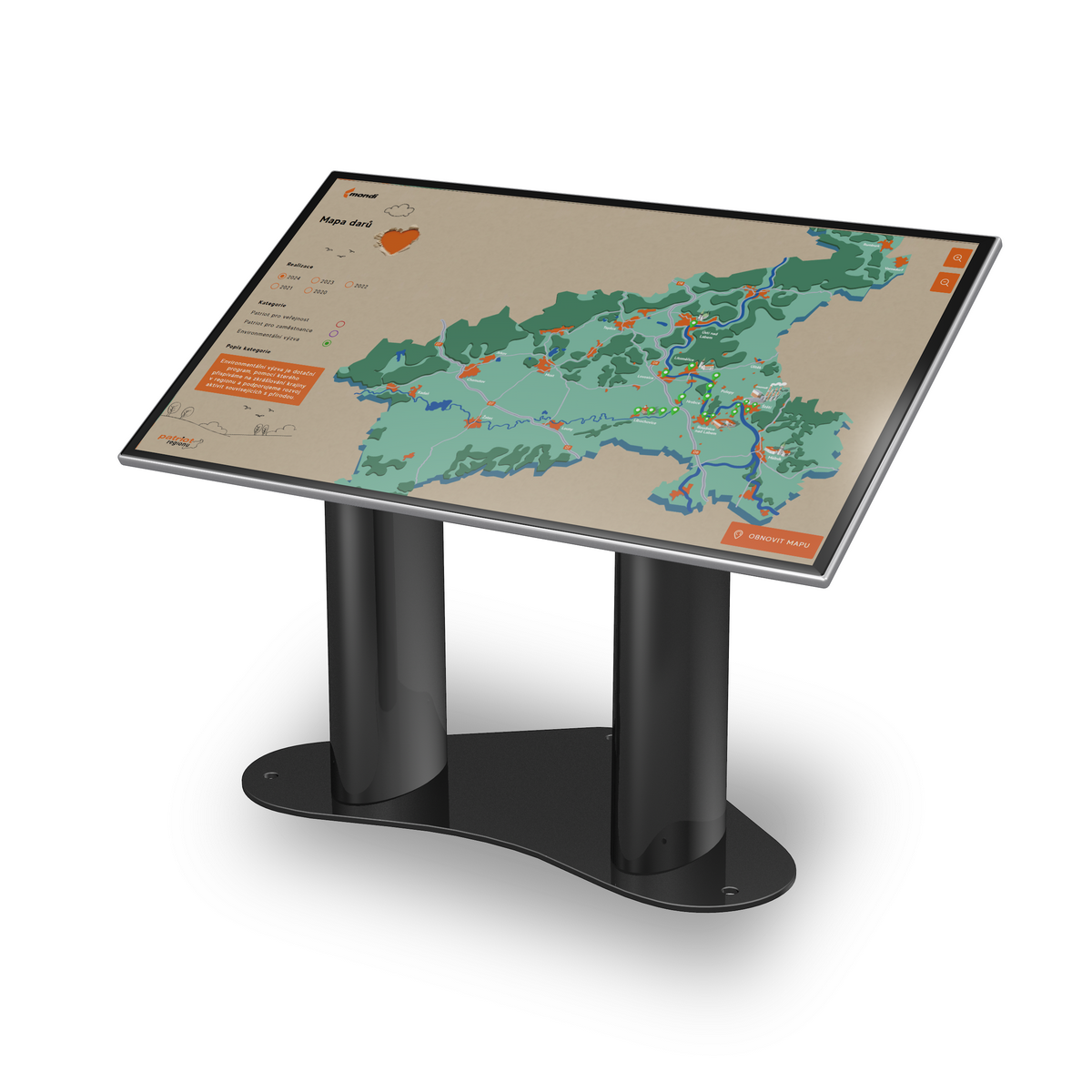 Je ideálním řešením, které upoutá zraky kolemjdoucích a umožňuje flexibilní umístění. Na vnitřní dotykovém zařízení s průmyslovým LCD full HD (možnost i 4K) displejem (na šířku) lze přehrávat firemní prezentace, propagovat produkty a služby, a další potřebné informace. Poutavým a uživatelsky přívětivým způsobem je tak vyřešena marketingová komunikace se zákazníky.
