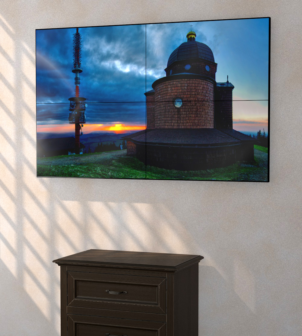 Video panel ze čtyř bezrámečkových displejů (tzv. "4x4") je systém, kde jsou čtyři bezrámečkové panely uspořádané do matice 2x2, čímž vytvářejí jednu velkou zobrazovací plochu. Klíčovou vlastností je použití speciálních displejů s ultra tenkými rámečky, které minimalizují švy mezi jednotlivými panely